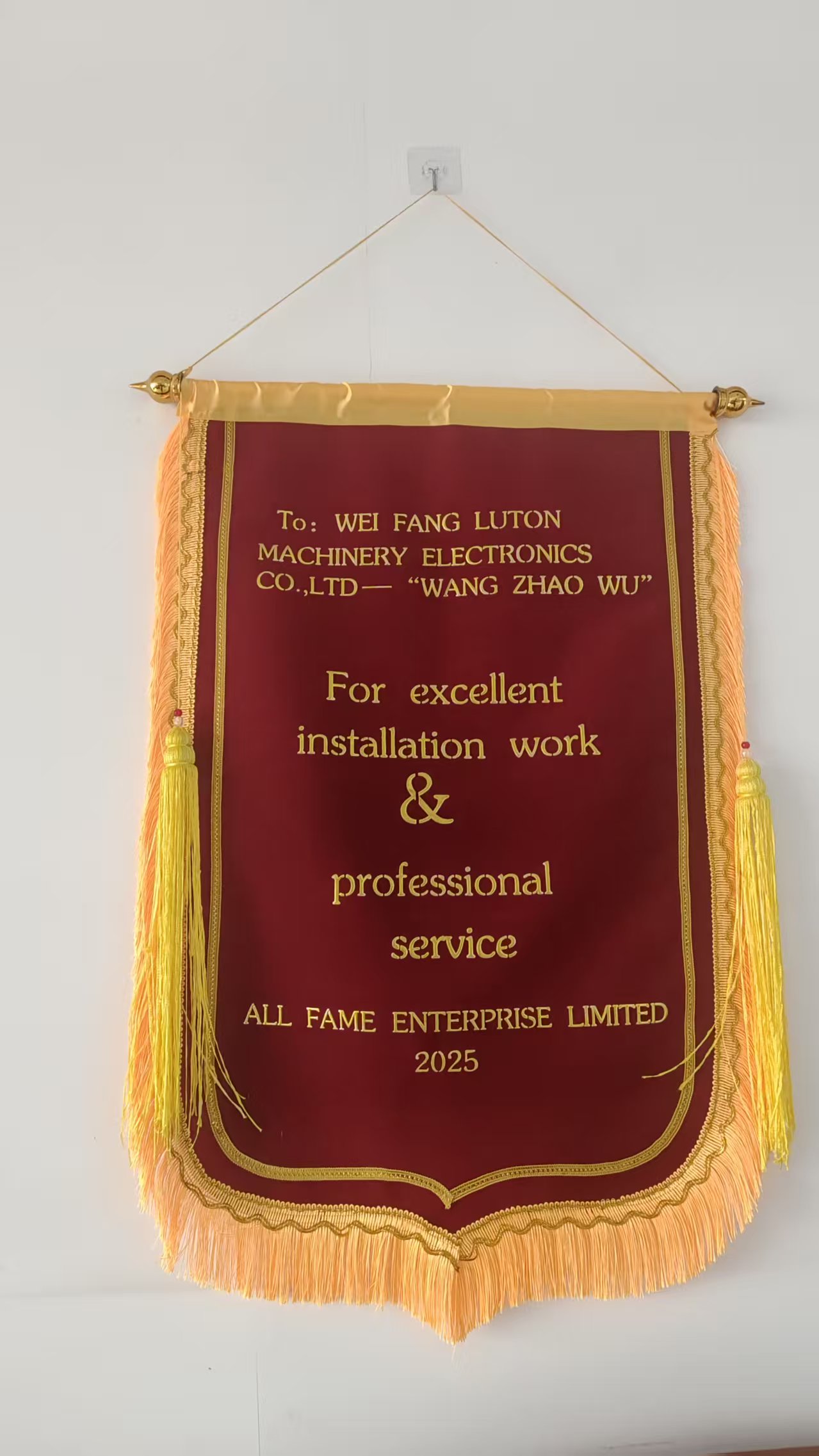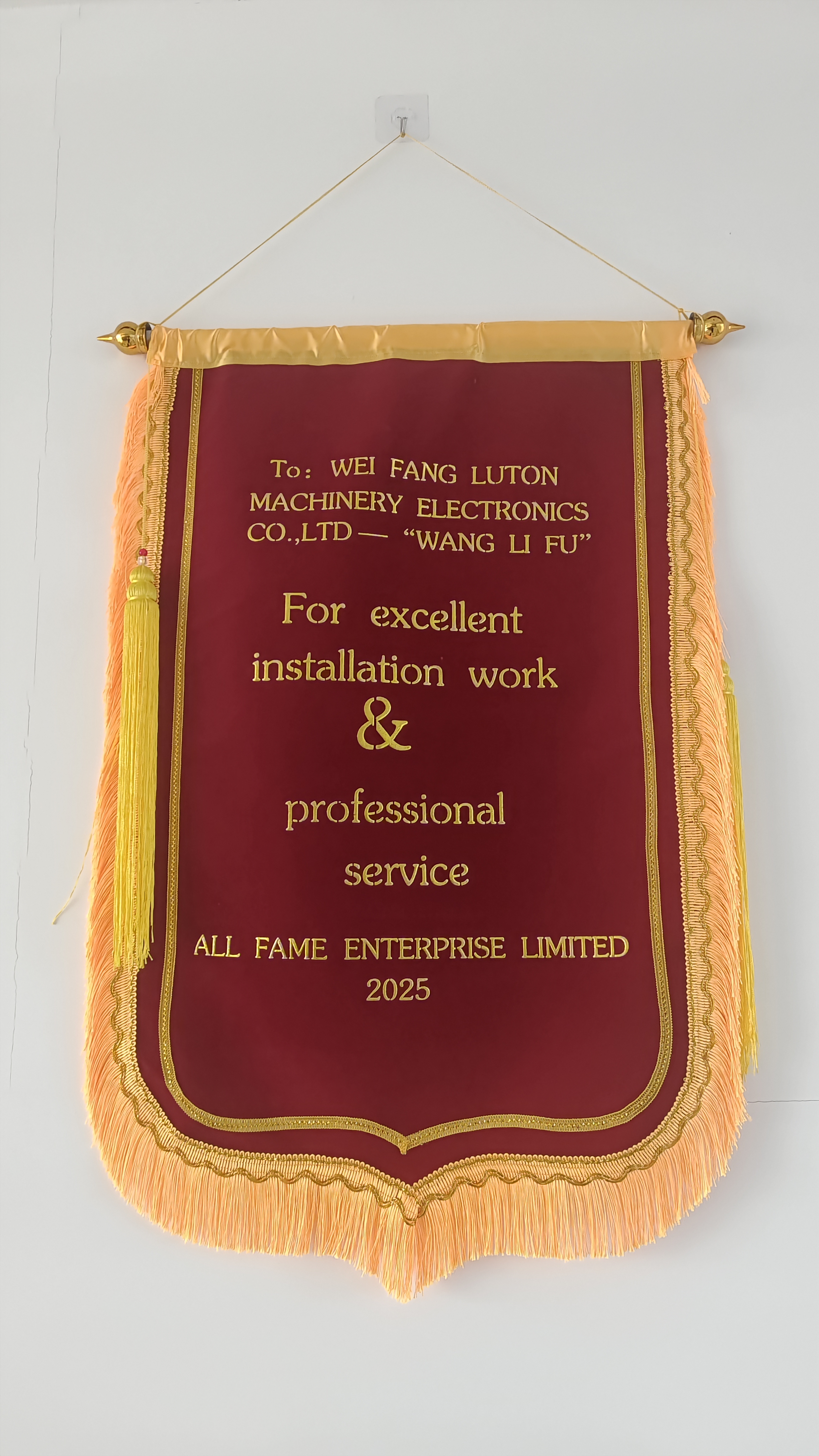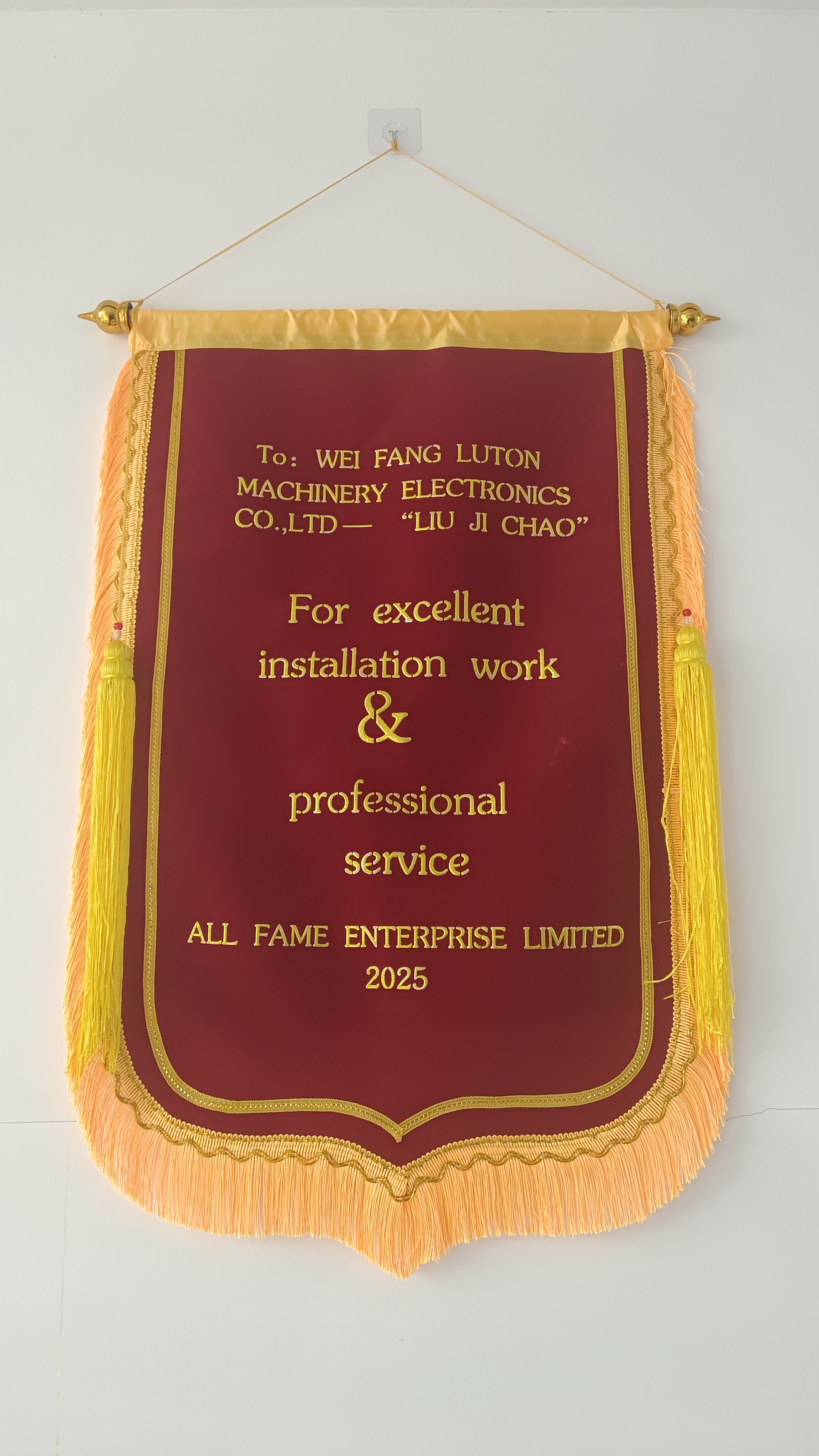 來(lái)西亞大型工廠內(nèi)掌聲雷動(dòng),隨著設(shè)備最后的調(diào)試成功,由濰坊市路通機(jī)械電子有限公司派遣的海外安裝團(tuán)隊(duì)收到客戶特別定制的錦旗。這面跨越山海而來(lái)的錦旗,見(jiàn)證了中國(guó)智造服務(wù)全球的硬實(shí)力與軟溫度。
